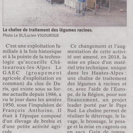 C'est un projet global d’évolution durable des pratiques et d’augmentation de la production, pensé de la plantation des cultures à la livraison des produits, qu'a réalisé le GAEC du Clos de Daris. Pour cela, des investissement dans du matériel technique (aracheuse semi-automatique de légumes récines; salle de lavage, de conditionnement et de tri des légumes) ont été nécessaires afin de s'adapter à la demande et de valoriser leur production, ainsi que de préserver et de pérenniser le personnel mais également d’innover en termes d’itinéraire cultural.